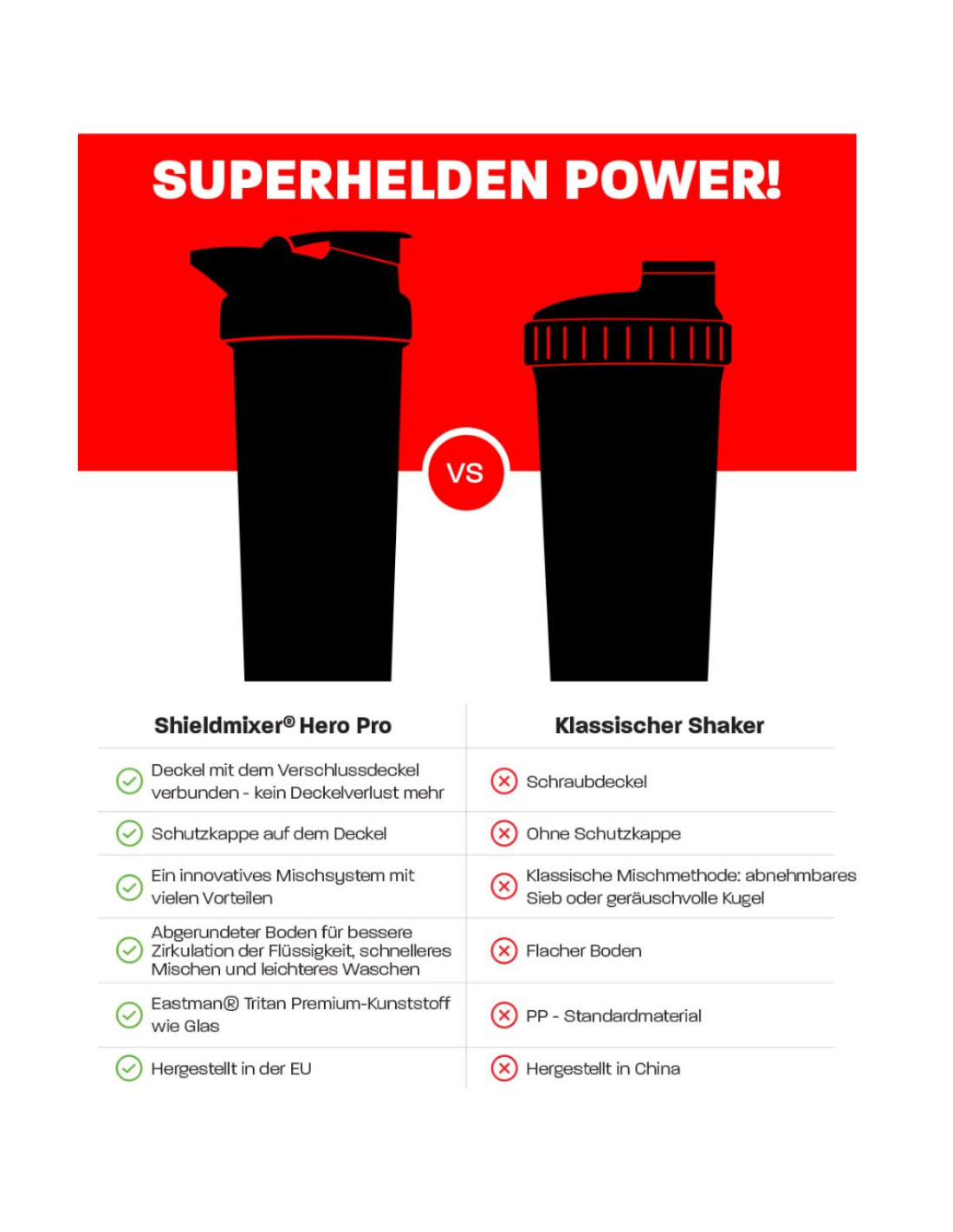 • Auslaufsicheres Design: Dank des Spout Shield Deckels und des Heroic Lid Designs ist der Shaker absolut dicht – kein Auslaufen, kein Verschütten.